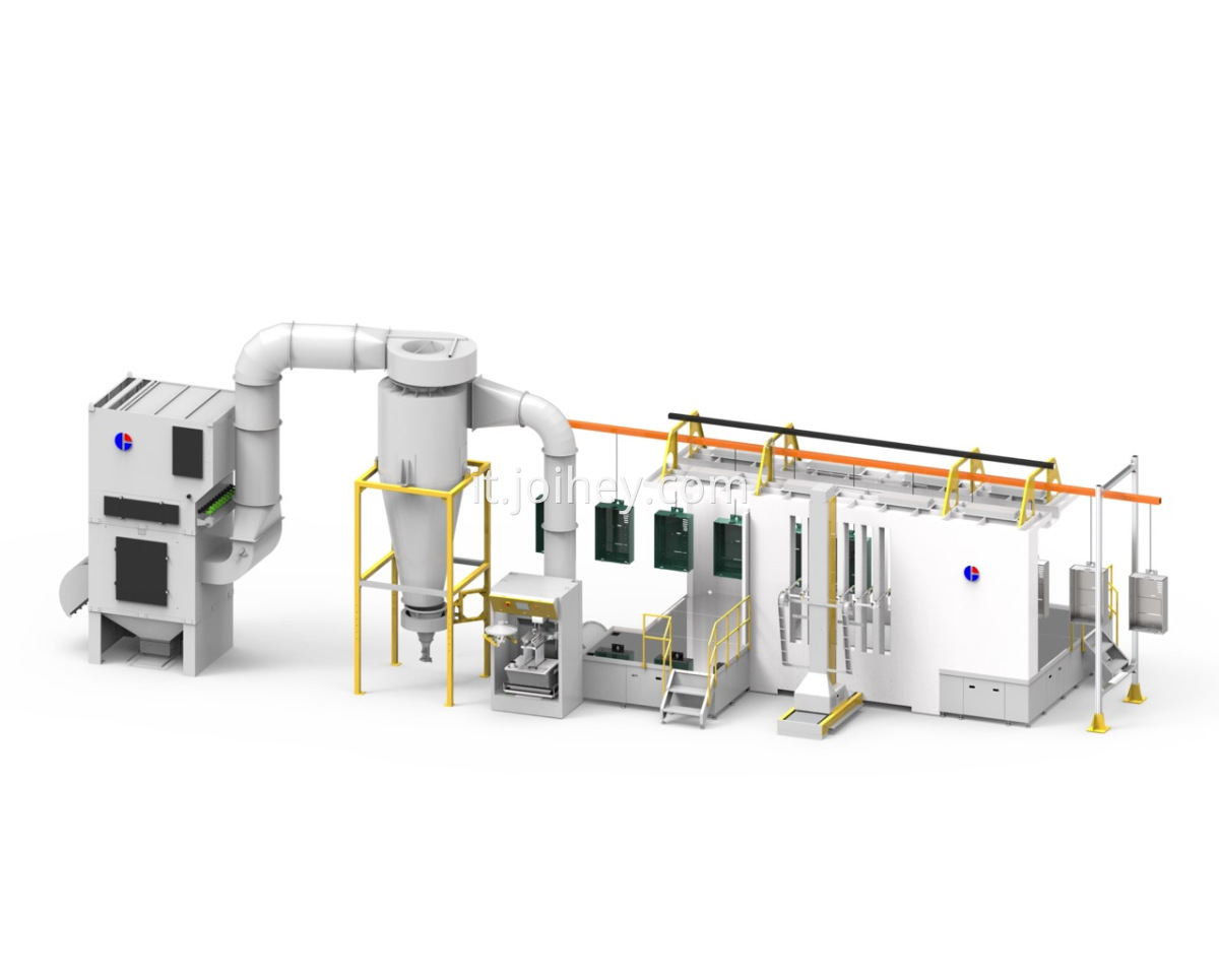 1. La cabina a spruzzo può adottare una struttura sandwich completa ed essere equipaggiata con il centro di polvere di cambio di colore rapido;